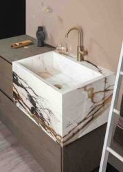 Dekker Zevenhuizen kan werkbladen en wasbakken voor badkamers uit één materiaal maken. Hierdoor krijgt het totaalontwerp een luxe en rustige uitstraling. De fabrikant biedt voor deze collectie hetzelfde assortiment materialen en kleuren aan die ook voor keukens gebruikt wordt.