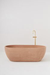 Een robuust bad met een zeer strakke vormgeving; dat is de nieuwe Petite Valencia van Concretentation. Dit vrijstaande bad biedt voldoende plek voor twee personen. Omdat dit bad met de hand gemaakt wordt, is ieder exemplaar anders. De productietijd kost twaalf tot veertien weken maar krijgt de klant een bad voor terug die niemand anders heeft. Een uniek, handgemaakt exemplaar.