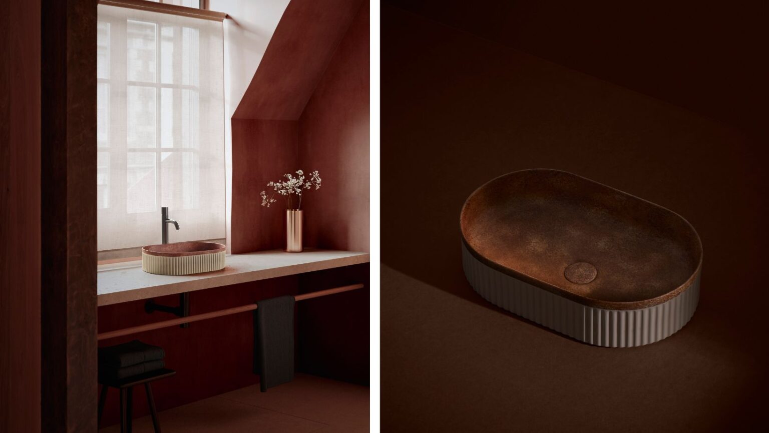 Voor de Dobra-serie hebben de ontwerpers van Bathco hun inspiratie gehaald uit de natuurlijk. Met name uit de vormen van Gingko biloba-bladeren, een van de oudste boomsoorten. De groeven aan de buitenkant van de kommen bootsen de groeven van een blad na. Dit model is beschikbaar in drie ontwerpen: turkoois, chocolade/goud en verouderd zwart.