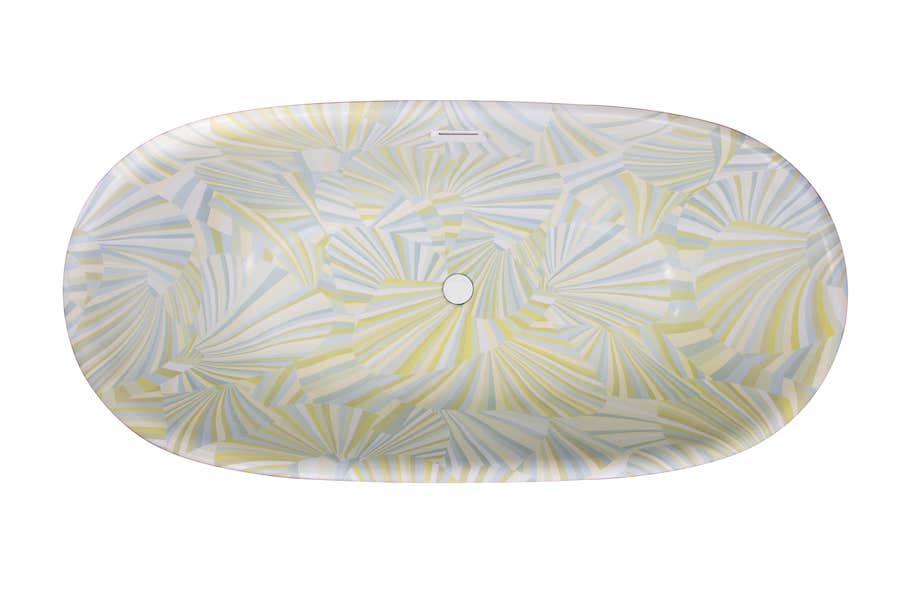 De excentrieke Bethan Laura Wood is gevraagd om voor Kaldewei een nieuw motief te bedenken. Deze uitdaging greep ze met beide handen aan. De Londense designer bedacht een wervelend patroon waarin de kleur avocado een belangrijke rol speelt.