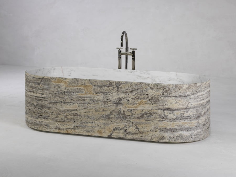 Voor het interieur van de badkuip zijn de opties Bianco Carrara en Bianco del Re beschikbaar, terwijl het exterieur naar wens kan worden aangepast met een breed scala aan marmer, travertijn en halfedelstenen. Klanten kunnen het bad dus helemaal naar eigen smaak aanpassen.