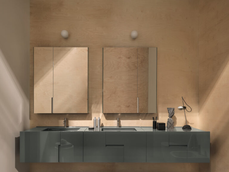 De kastdeuren hebben geïntegreerde handgrepen die zowel horizontaal als verticaal geplaatst kunnen worden. Wanneer de kastdeuren gesloten zijn, valt op dat deze handgrepen een belangrijk onderdeel zijn het van het ontwerp. De Filo-serie is verkrijgbaar in twee nieuwe kleuren van Ceramica Cielo: Talpa en Fumo (zie foto).