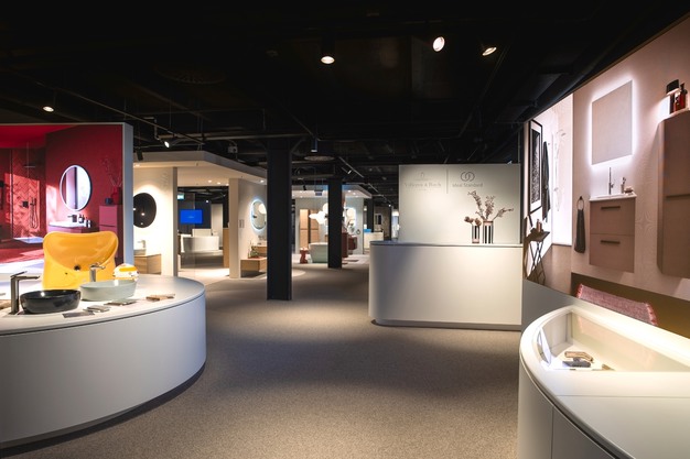 Bij binnenkomst stappen bezoekers in de wereld van Villeroy & Boch, waar design, techniek en inspiratie samenkomen. De showroom brengt de collecties en designconcepten van zowel Villeroy & Boch als het recent overgenomen Ideal Standard samen. Met deze twee sterke merken onder één dak biedt de Villeroy & Boch Group een nog uitgebreider aanbod en meer maatwerkoplossingen in badkamerdesign. Terwijl Villeroy & Boch bekend staat om hoogwaardig keramiek en designinnovatie, voegt Ideal Standard jarenlange technische expertise in kranen- en doucheoplossingen toe. Samen bieden ze betrouwbare kwaliteit en flexibele oplossingen voor uiteenlopende projecten.