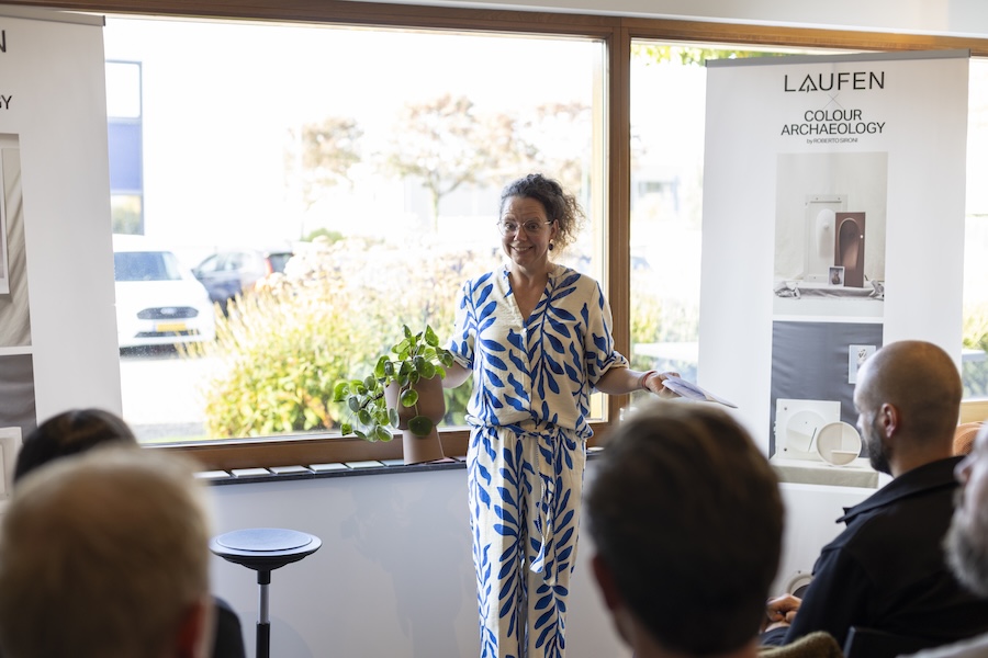 Ook Els van Maren sprak tijdens de avond. Zij lichtte toe wat biophilic design precies inhoudt en waarom keramiek daarin een belangrijke rol kan spelen. Met concrete voorbeelden liet de ontwerpster zien hoe zelfs kleine ingrepen al een groot verschil maken in de manier waarop we een ruimte ervaren.