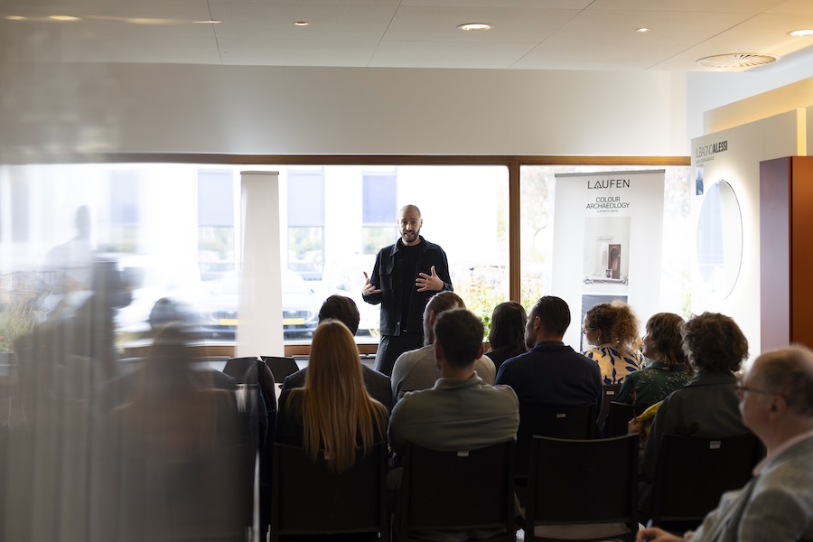Voor LAUFEN’s designavond Shaped by Nature waren drie gerenommeerde sprekers uitgenodigd, onder wie ontwerper Roberto Sironi, die verantwoordelijk is voor de nieuwe kleurenlijn van de sanitairspecialist. Elk van hen liet op eigen wijze zien hoe vakmanschap het ontwerpproces verdiept en waarom het voor keramiekspecialisten essentieel is om de band met de natuur te behouden.