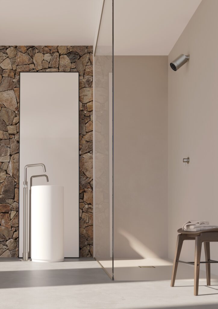 De douche neemt een steeds centralere plek in binnen de badkamer. Waar de inloopdouche lange tijd dé standaard was, zien we nu vrijstaande douches die het middelpunt van de ruimte vormen. Deze opstelling benadrukt het ritueel van douchen als moment van rust en verfrissing, en maakt van de douche een echte blikvanger. Transparante wanden en stijlvolle regendouches versterken het luxe en open karakter van deze trend.