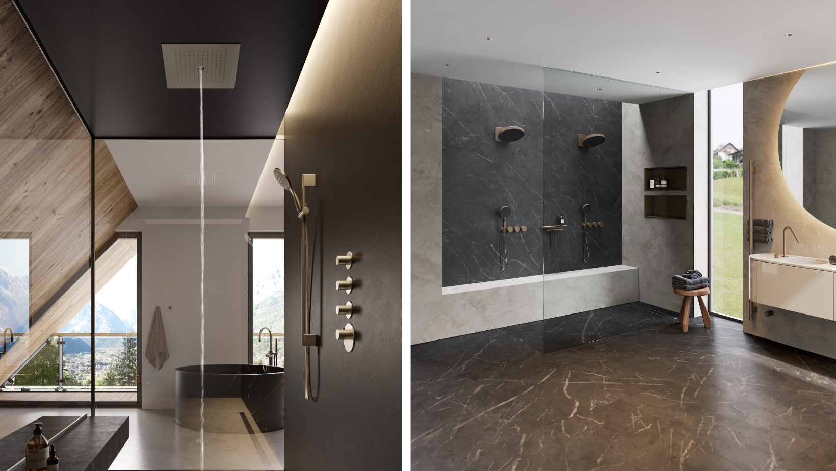 De douche neemt een steeds centralere plek in binnen de badkamer. Waar de inloopdouche lange tijd dé standaard was, zien we nu vrijstaande douches die het middelpunt van de ruimte vormen. Deze opstelling benadrukt het ritueel van douchen als moment van rust en verfrissing, en maakt van de douche een echte blikvanger. Transparante wanden en stijlvolle regendouches versterken het luxe en open karakter van deze trend.