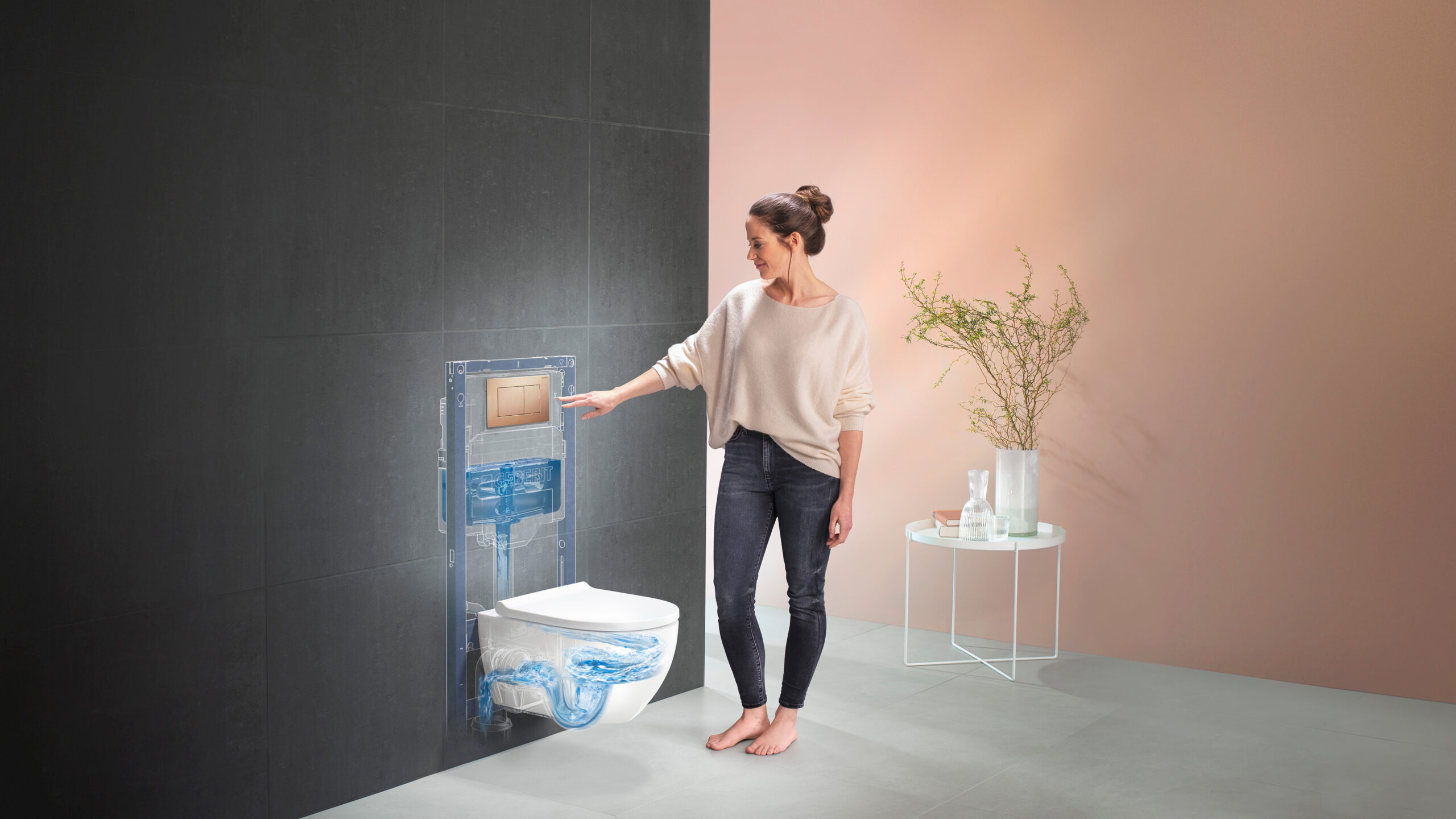 Geberit ontwikkelt sanitaire systemen waarbij reservoir, keramiek, spoeltechniek en bedieningsplaten op elkaar zijn afgestemd. Volgens het bedrijf leidt deze integrale benadering tot een stabiel laag watergebruik en draagt zij bij aan betere scores binnen certificeringssystemen zoals BREEAM en LEED, waarin water- en energieverbruik meetellen.