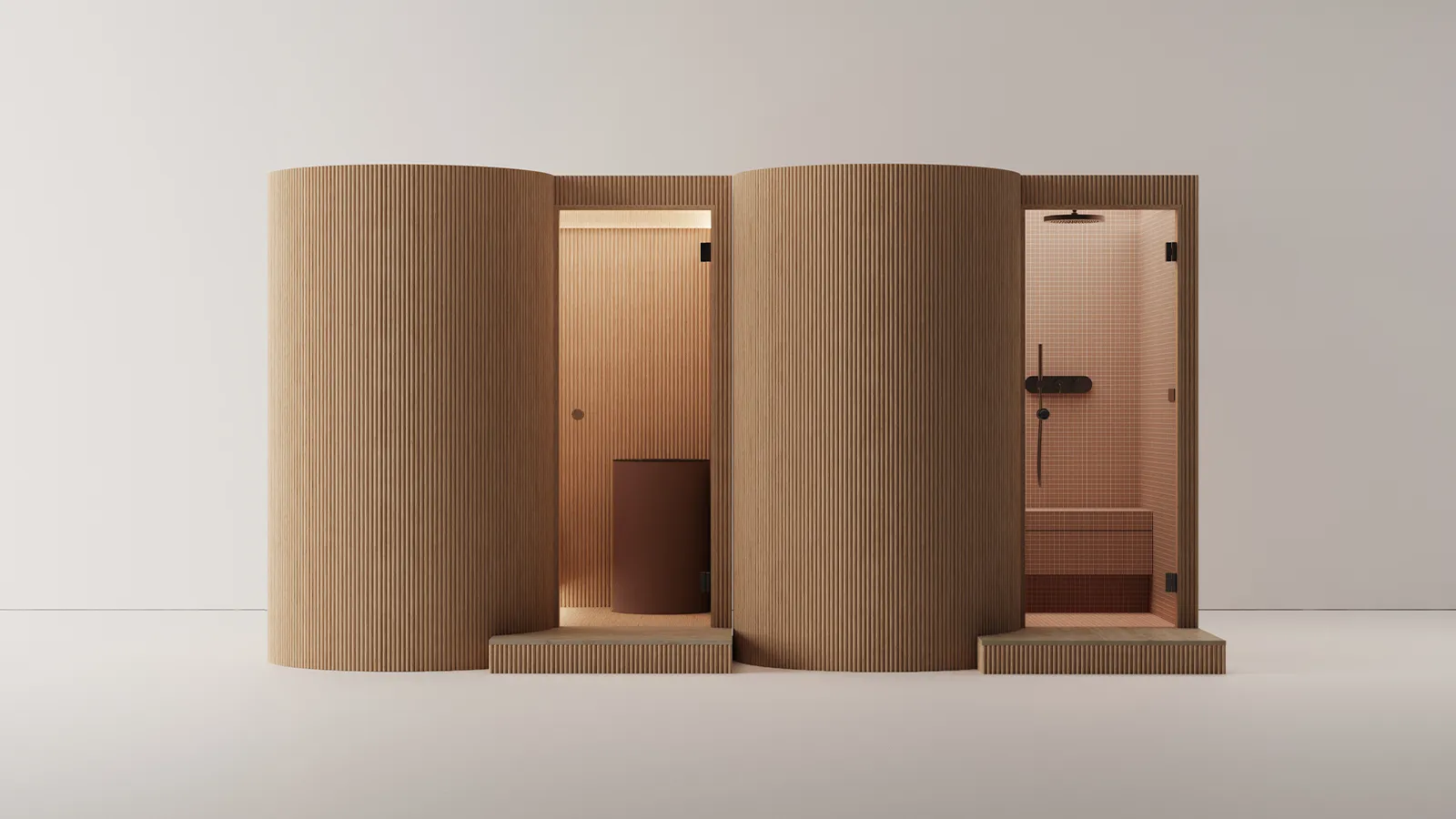 “Ik wilde dit architectonische element vertalen naar een wellnessruimte: een compacte, bijna archetypische plek waar je tot rust komt”, aldus Urquiola. ‘Het systeem combineert sauna en hammam in een modulaire structuur die zich aan elke omgeving aanpast, en tegelijkertijd een krachtig designstatement maakt.”